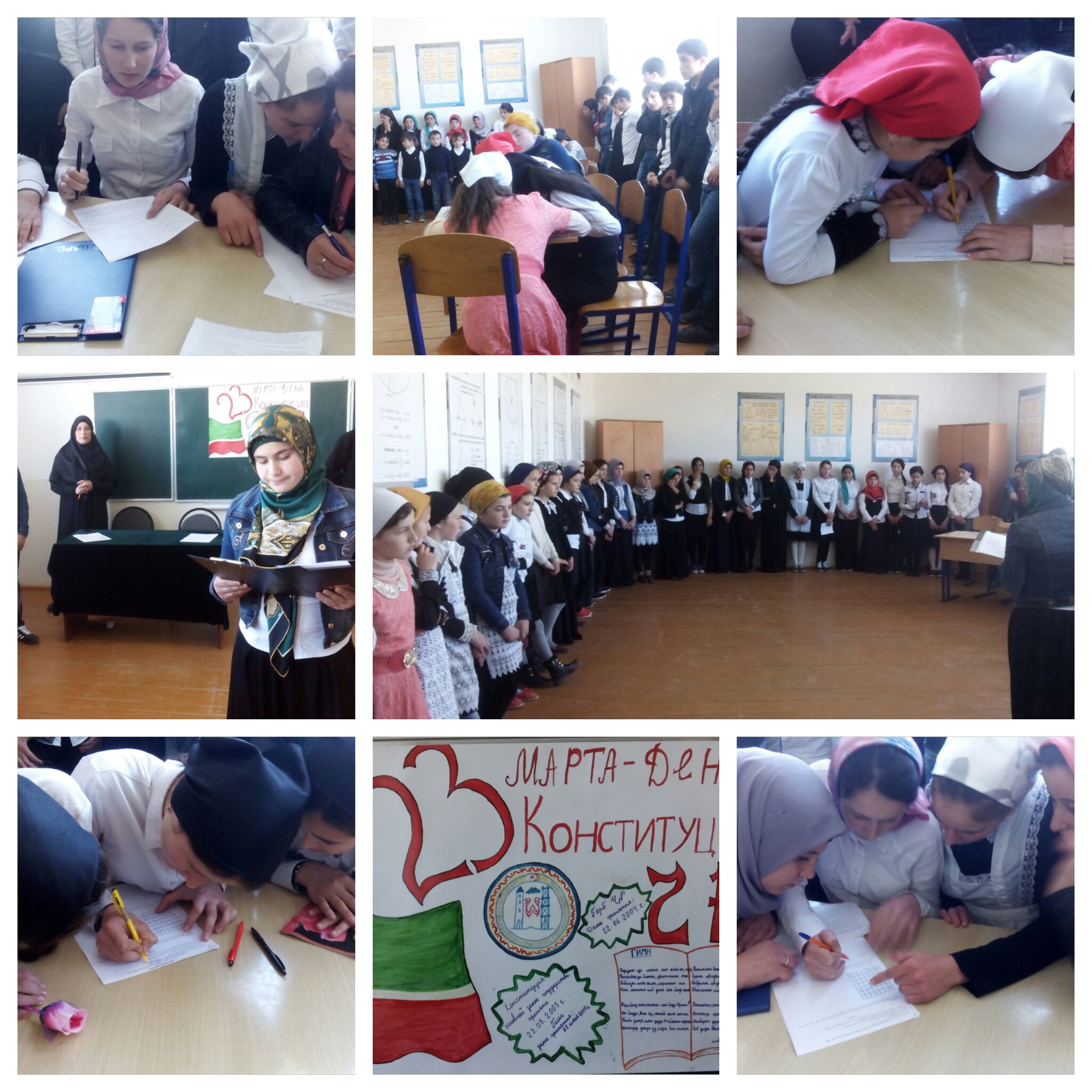 22.03.2016В МБОУ "Даргинская СОШ№2" прошли торжественные мероприятия посвяшённые тринадцатой годовшине Дня Конституции Чеченской Республики призванные привить уважение и почитание государственных символов ЧР (герб, флаг, гимн) воспитание чувства патриотизма и любви к Родине.