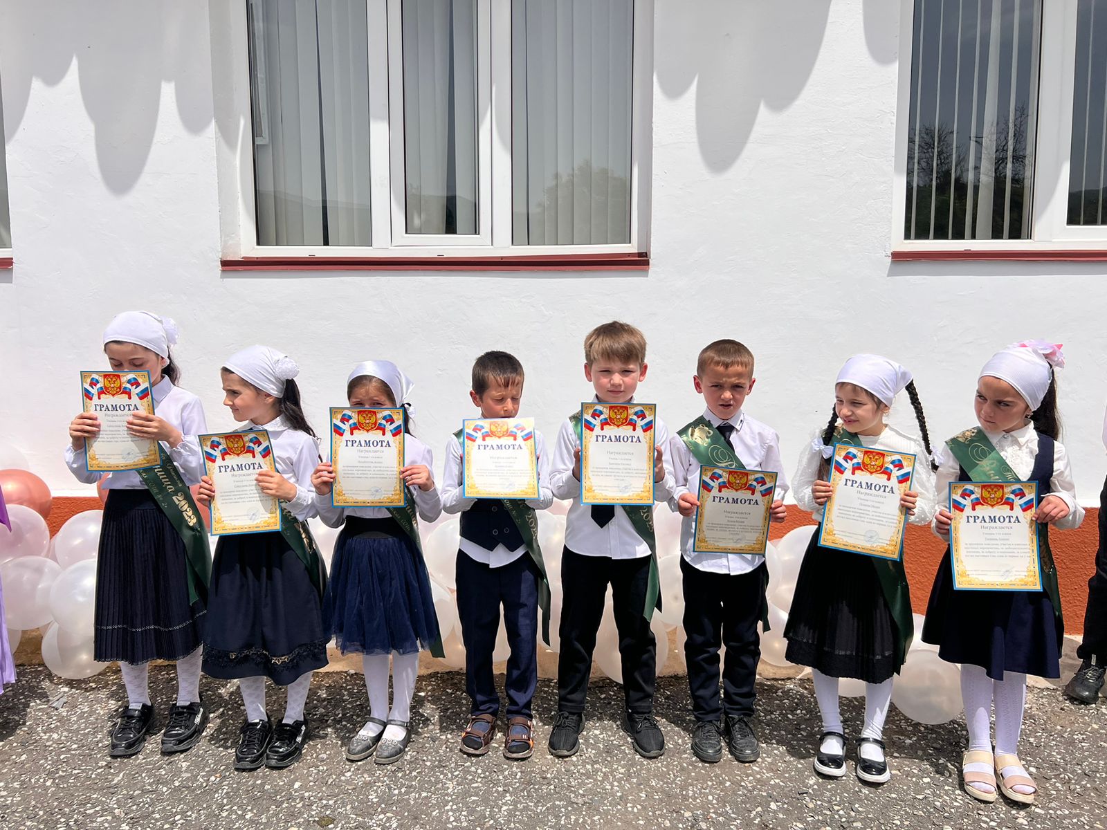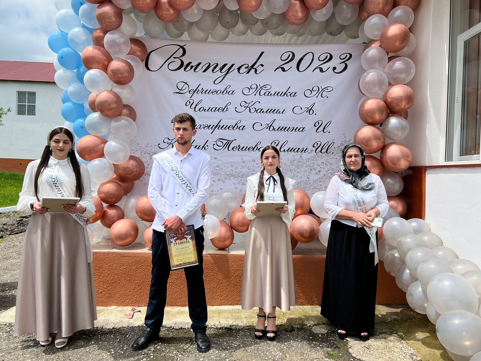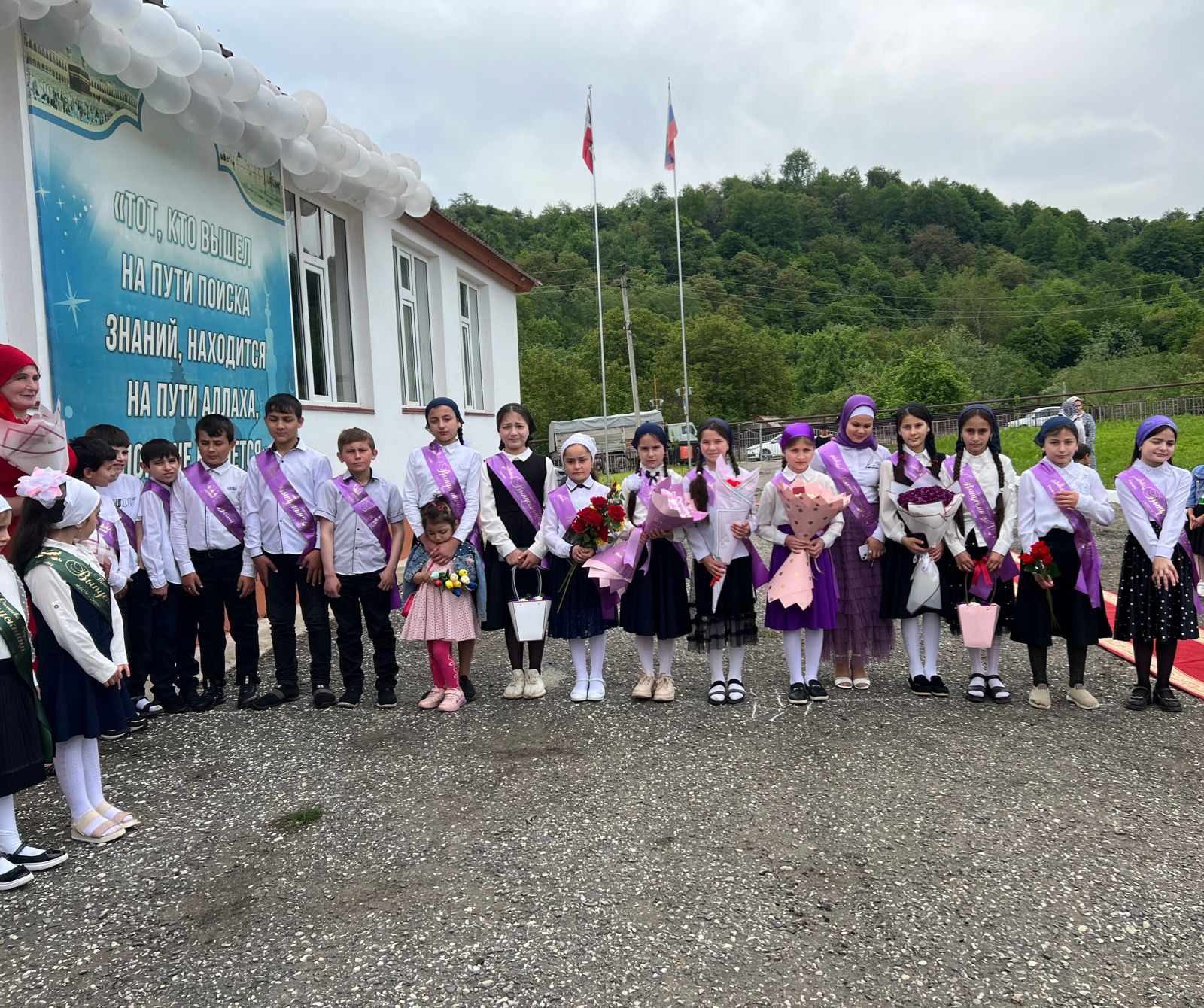 Торжественно поздравил выпускников и зам.директора школы Сайдулаев Х.М., звучали напутствия учителей, которые за столько лет, проведенных в школе, стали почти родными, трогательные речи родителей и ответные слова не менее взволнованных выпускников. И, конечно же, наивные стихи о последнем звонке из уст самых маленьких школьников, с некоторой завистью смотрят на выпускников, кажущихся такими взрослыми и самостоятельными. Над праздничной школой льются песни о последнем звонке. И вот кульминационный момент. Одина из выпускниц Дерчигова М.М. , гордость школы, держа за руку наряженного первоклассника Чолаева Р.А.. звенит последний звонок, открывая дверь не только в школу, украшенную в честь праздника, но и во взрослую жизнь.